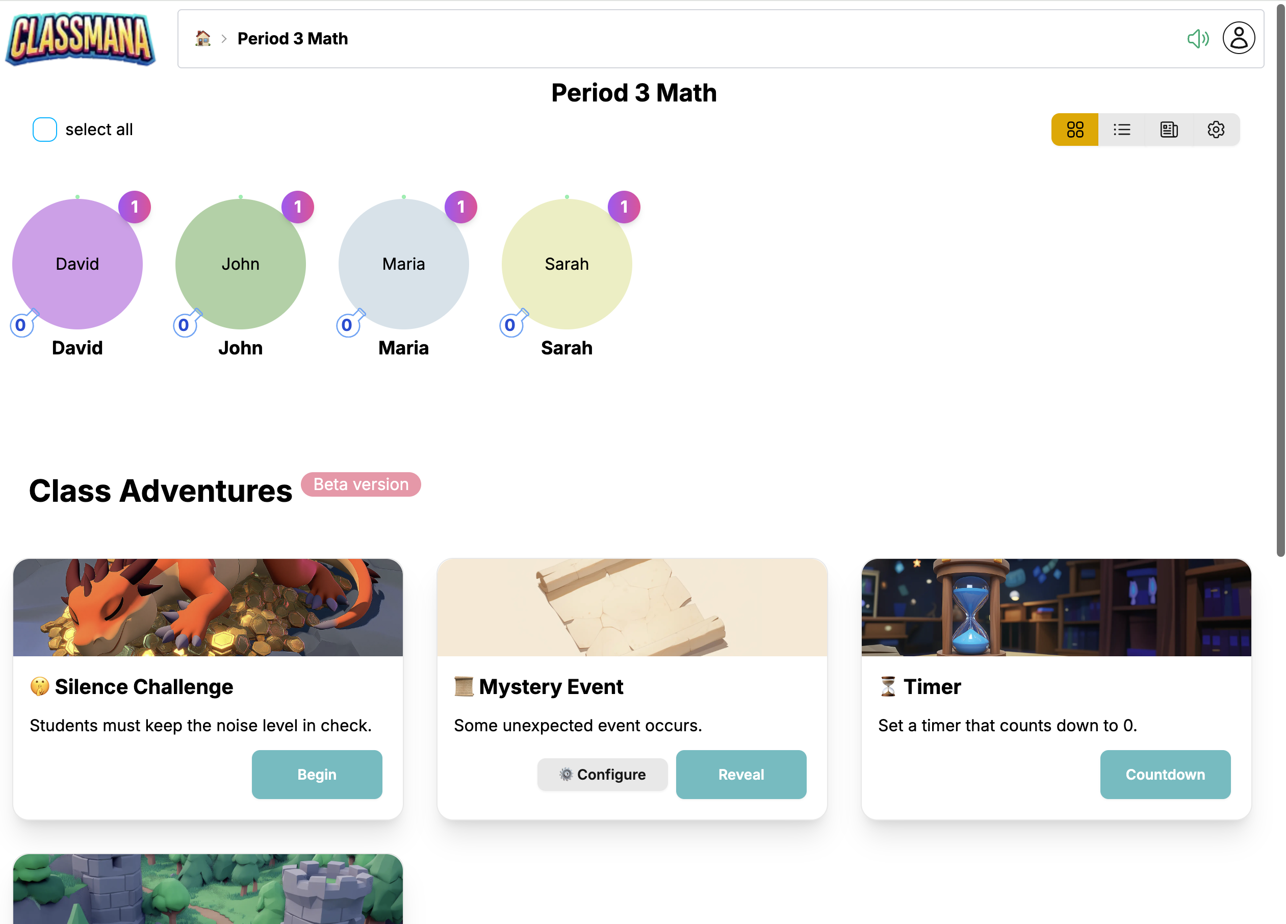 Ваша панель класу тепер покаже ваших учнів (якщо ви їх додали) і ви готові почати давати винагороди.