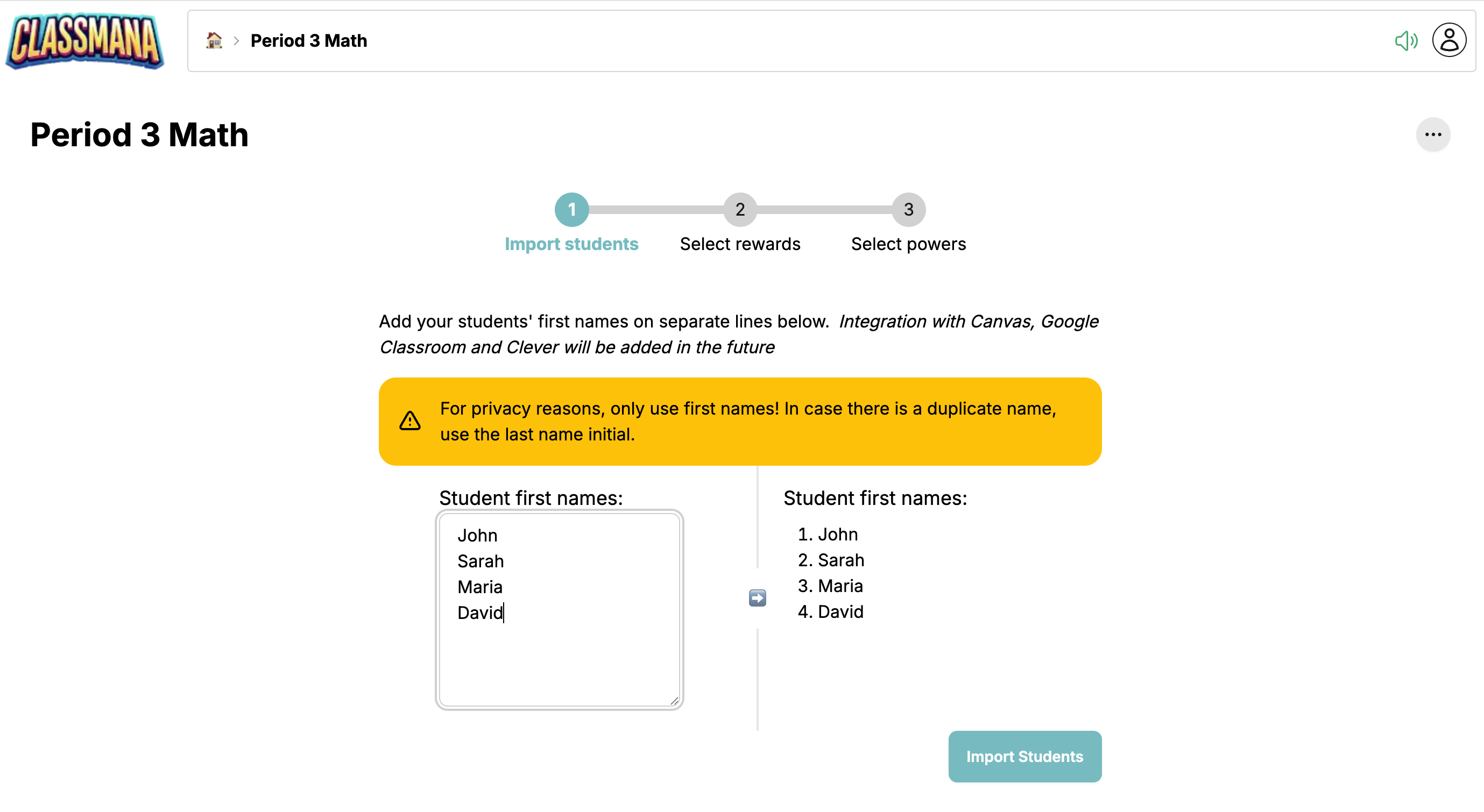 Копіювання/вставка з електронної таблиці працює чудово! Ви також можете редагувати імена пізніше в Налаштуваннях класу.